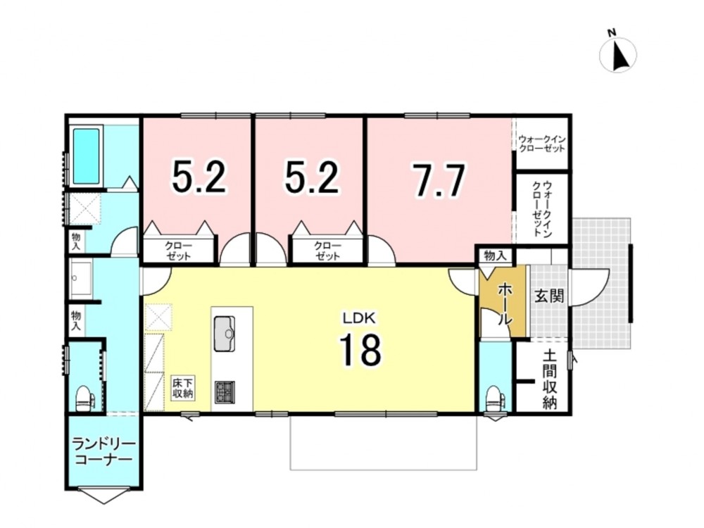 LDK 18.0帖 1室/洋室 7.7帖 1室/洋室 5.2帖 2室