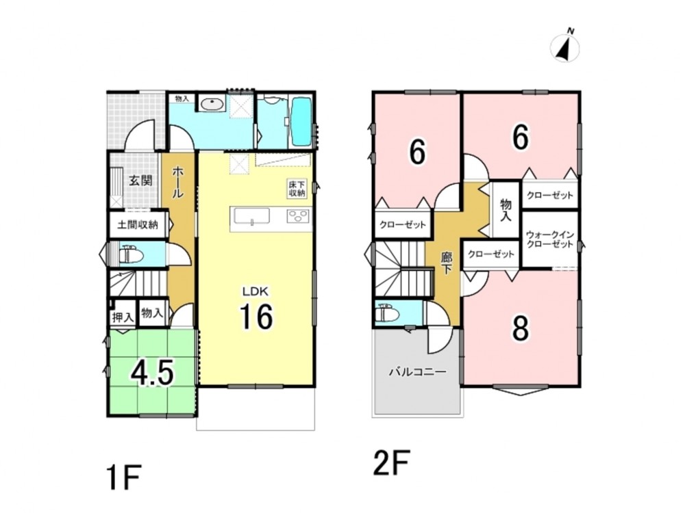 LDK 16.0帖 1室/和室 4.5帖 1室/洋室 8.0帖 1室/洋室 6.0帖 2室