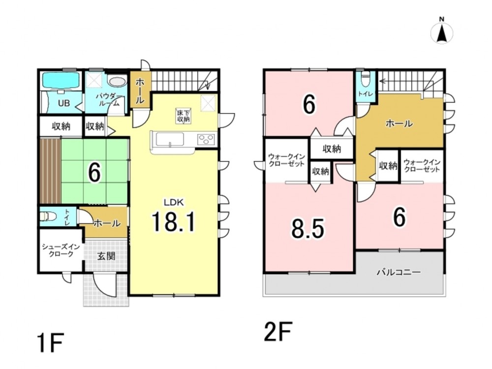 - システムキッチン、カウンターキッチン、シャンプードレッサー、浴室乾燥機、モニタ付インターホン、洗浄便座、ウォークインクローゼット、追い焚き、駐車場2台分、床下収納、浄水器、照明器具付き、シューズインクローク(土間収納)