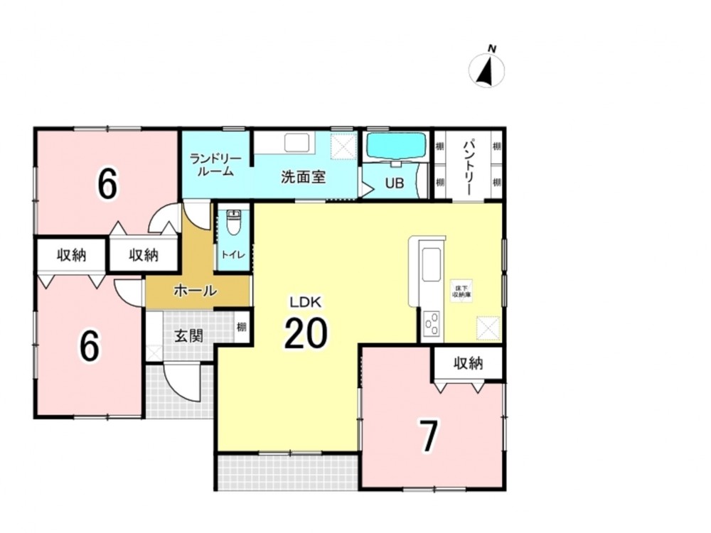 - システムキッチン、カウンターキッチン、シャンプードレッサー、浴室乾燥機、モニタ付インターホン、洗浄便座、追い焚き、駐車場3台分、床下収納、パントリー(食糧庫)、浄水器、照明器具付き