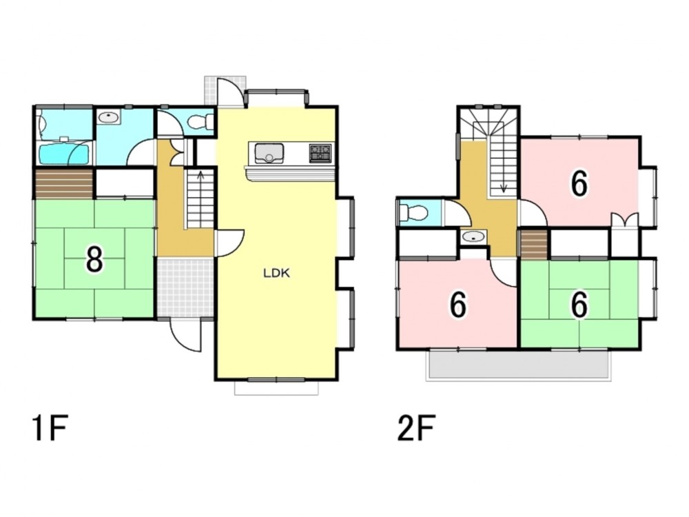 - カウンターキッチン、シャンプードレッサー、駐車場2台分、床下収納、トイレ2箇所、エアコンあり、物置あり