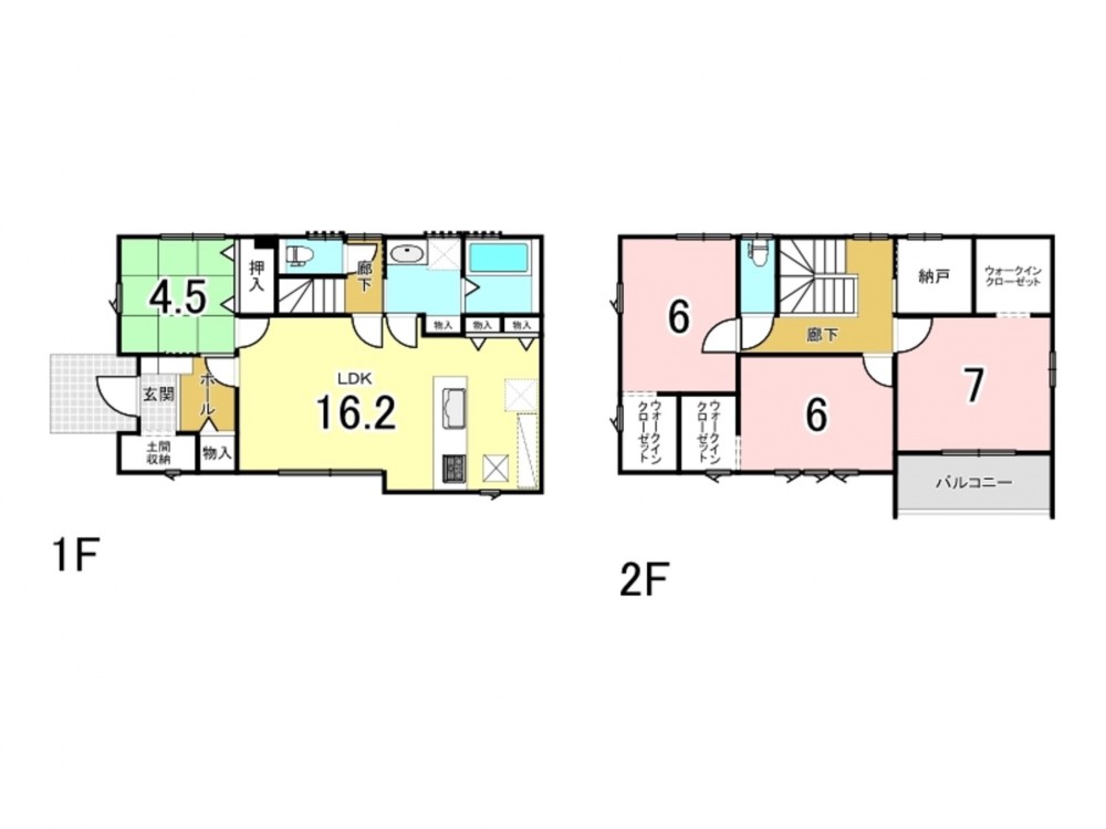 LDK 16.2帖 1室/和室 4.5帖 1室/洋室 7.0帖 1室/洋室 6.0帖 2室/S 2.0帖 1室