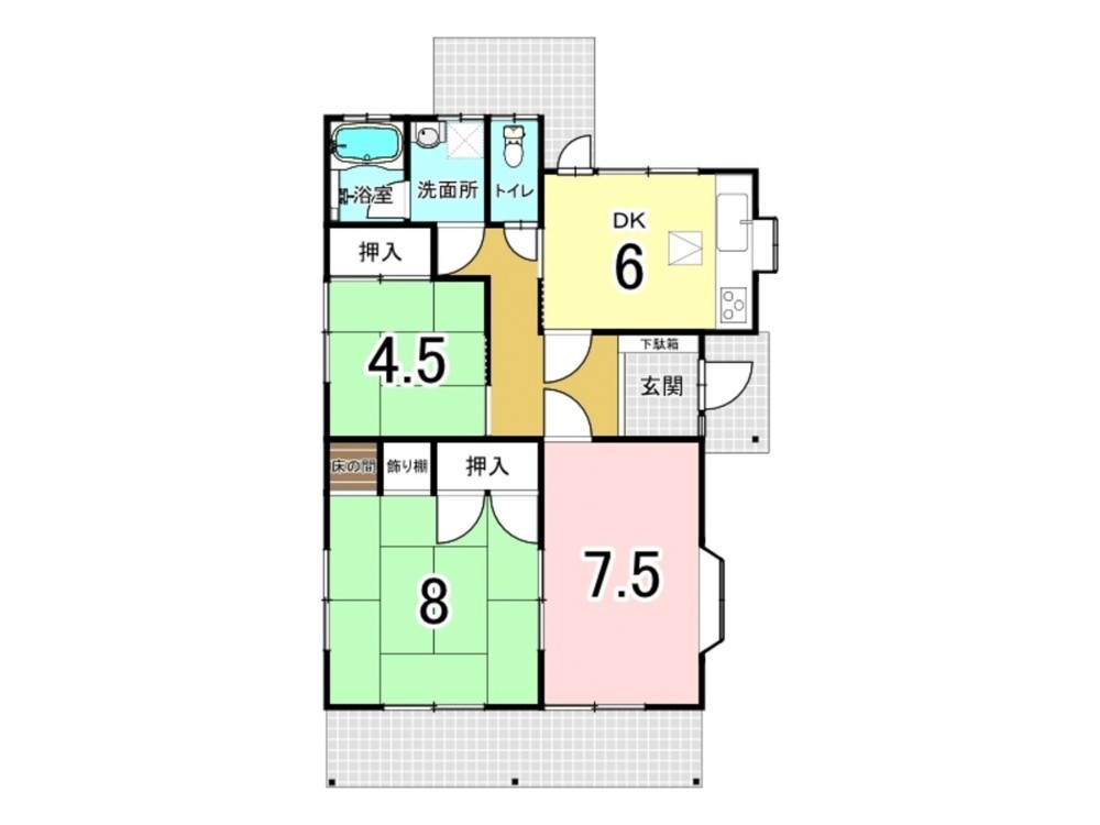 DK 6帖 洋室 7.5帖 和室 8畳 和室 4.5畳