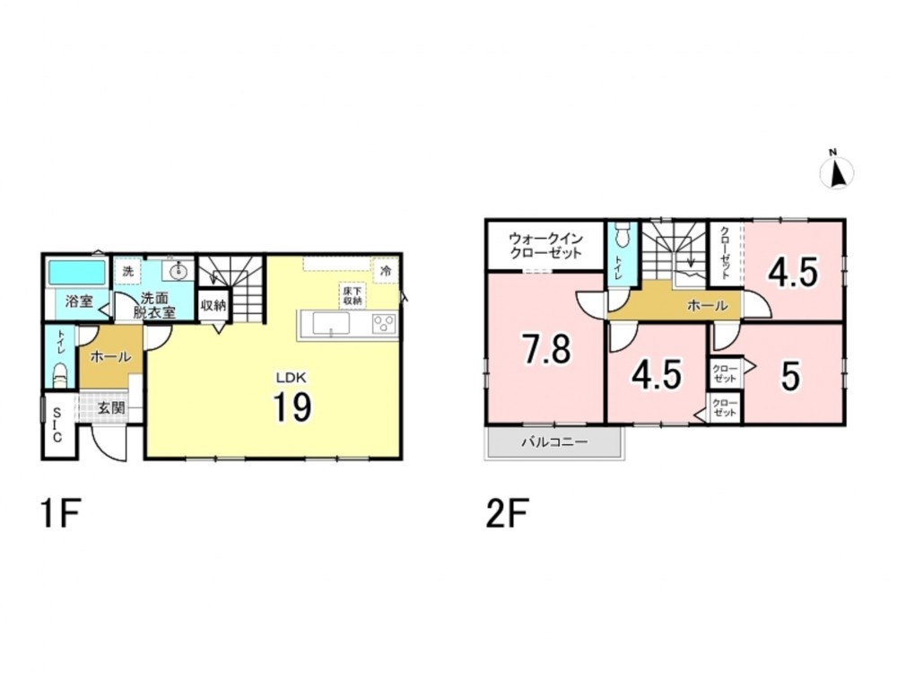 - システムキッチン、カウンターキッチン、食器洗浄乾燥機、シャンプードレッサー、浴室乾燥機、モニタ付インターホン、洗浄便座、ウォークインクローゼット、複層ガラス、駐車場2台分、床下収納、トイレ2箇所、浄水器つき、シューズインクローク(土間収納)