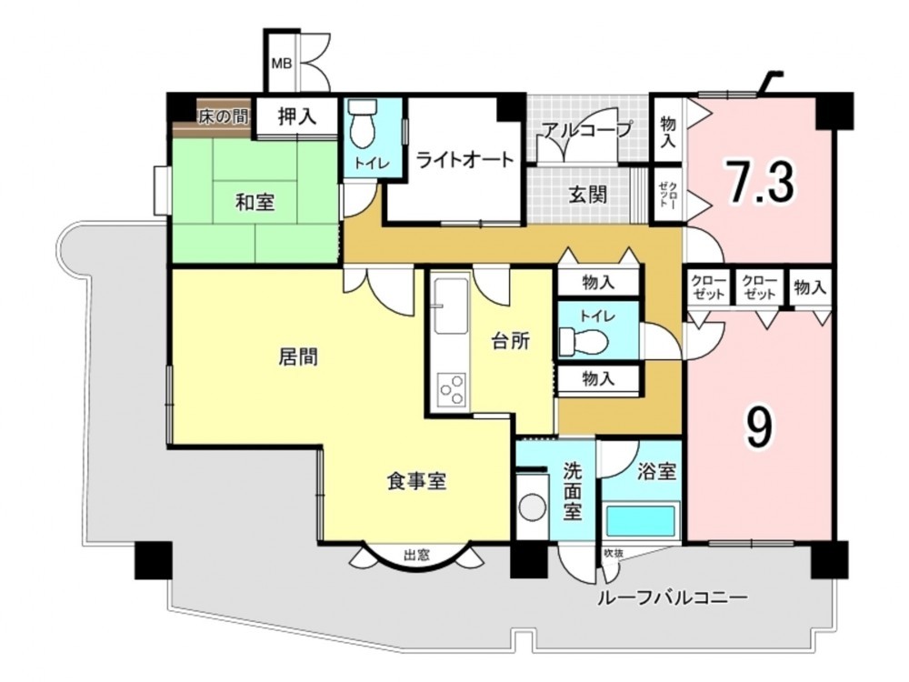 - システムキッチン、IHクッキングヒーター、追い焚き、ルーフバルコニー、天井収納、グルニエ(屋根裏部屋)、オートロック、トイレ2箇所、エレベーター